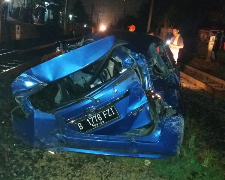 Sebuah mobil nekad menerobos perlintasan kereta di Jalan Raya Bosih RT 1/25, Kelurahan Wanasari, Kecamatan Cibitung, Kabupaten Bekasi, Sabtu (21/12/2019) malam.