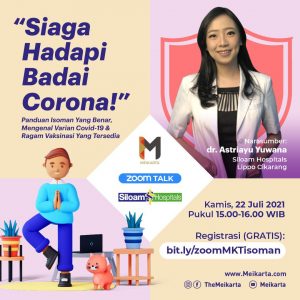 Lilies Surjono, Chief Marketing Officer Meikarta, dalam keterangan tertulisnya, Rabu (21/7/21) mengemukakan, kegiatan seminar ini dilakukan secara online dan tidak dipungut bayaran alias gratis, yang digelar bekerjasama dengan Siloam Hospitals Lippo Cikarang.