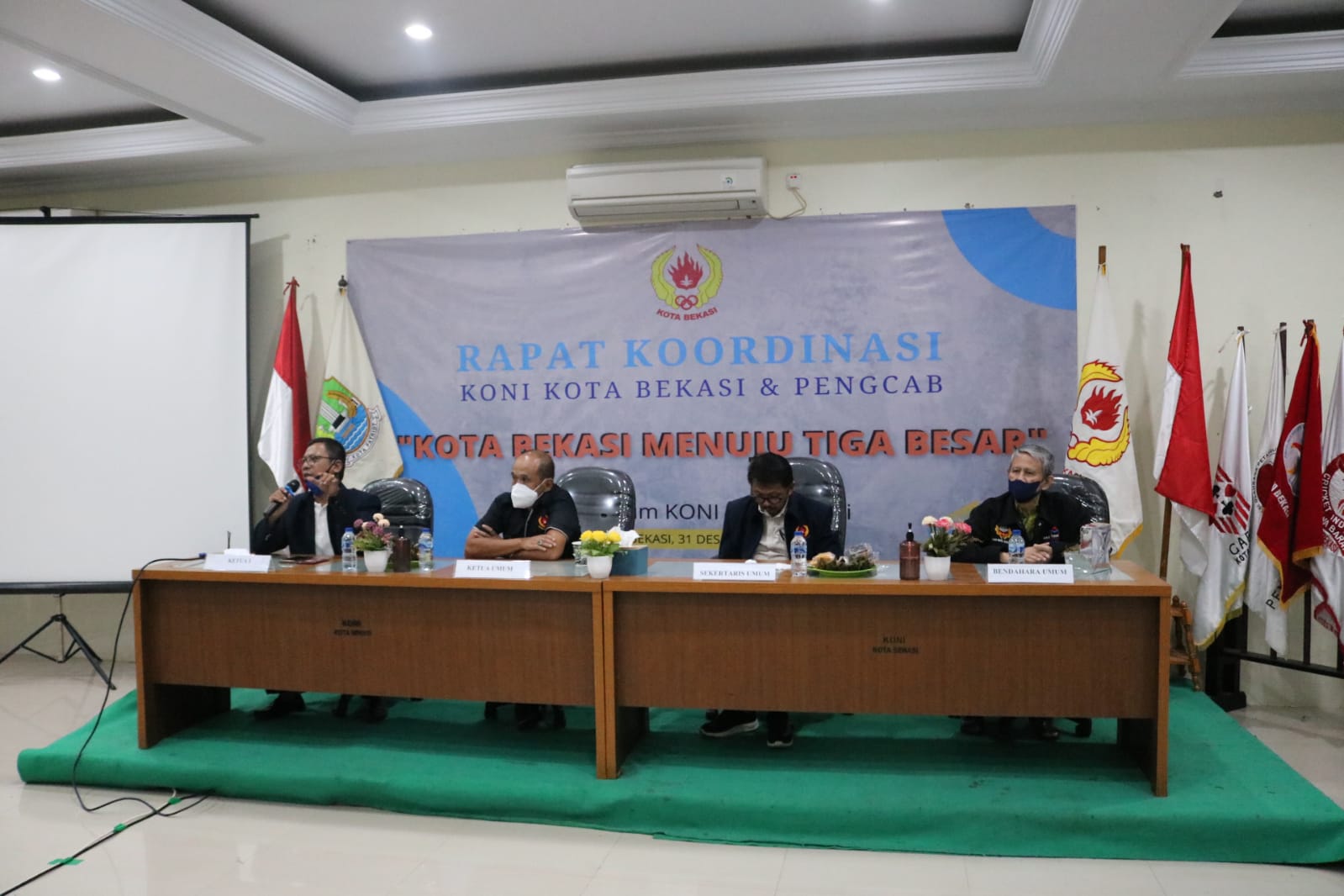 Hal tersebut dikatakannya saat memberikan pengarahan dalam Rapat Koordinasi antara KONI Kota Bekasi dan Pengurus Cabor yang dilaksanakan di Auditorium KONI Kota Bekasi, pada Jumat, (31/12/2021).