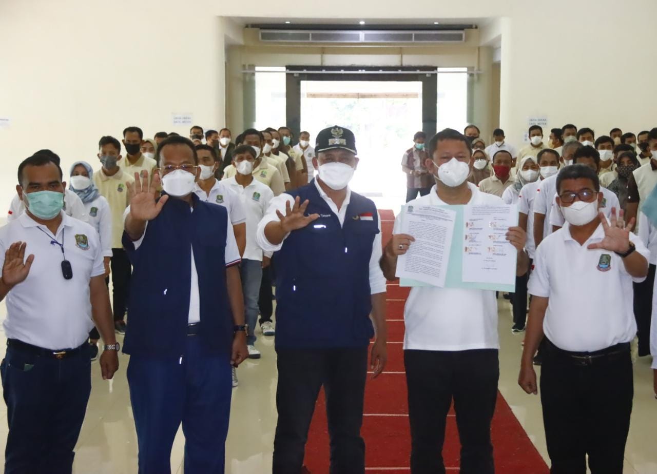 “Sebagai aparatur, kita adalah pelayan serta pengabdi bagi masyarakat. Sebagai aparatur, kita harus melayani masyarakat dengan baik. Saya apresiasi kesediaan saudara dan saudari yang hadir mendeklarasikan komitmen antikorupsi,” ungkap Tri.