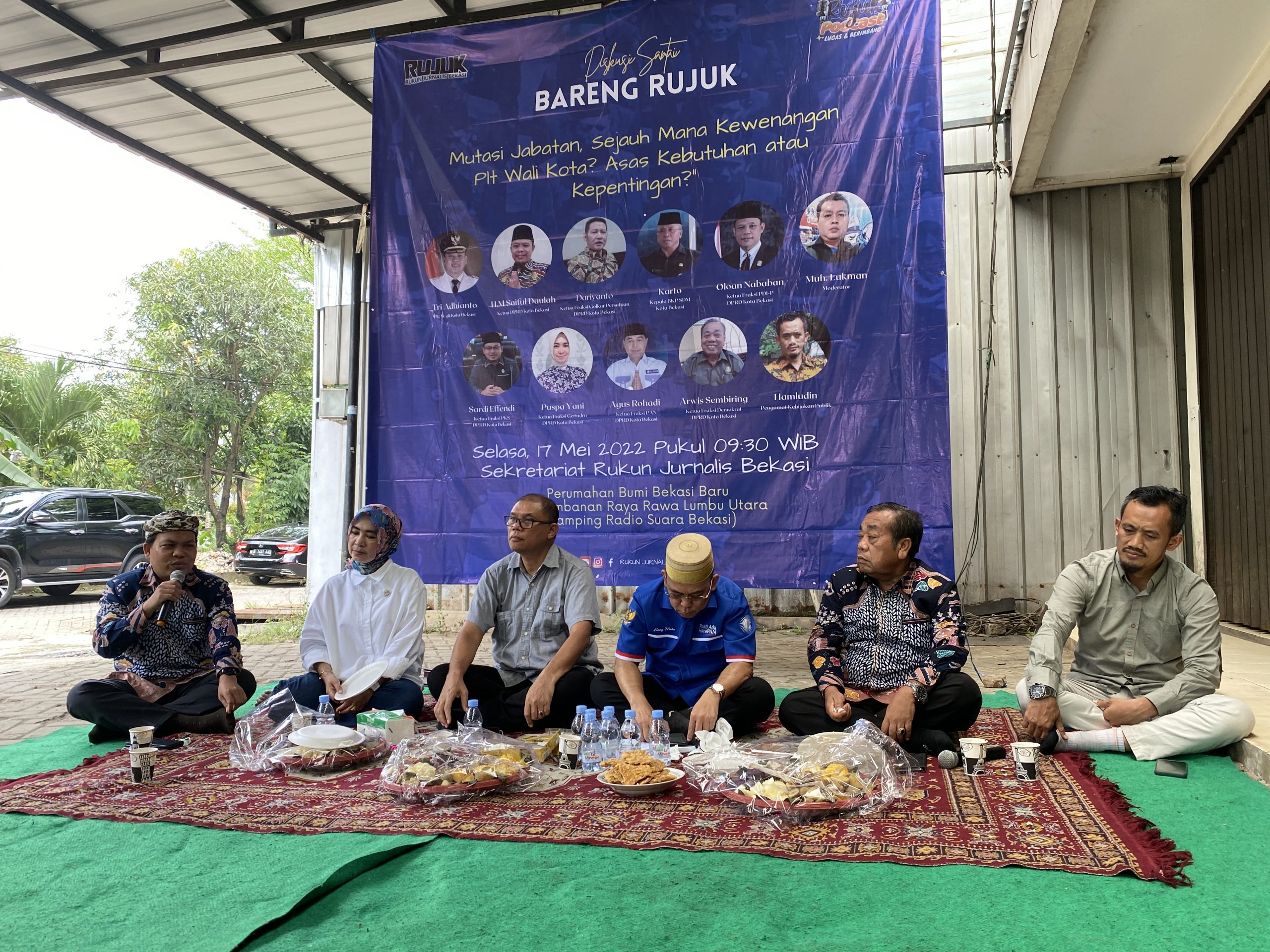 Dalam menyikapi polemik rotasi mutasi jabatan, Rukun Jurnalis Bekasi (Rujuk) menggelar diskusi santai bersama dengan legislator lintas Fraksi DPRD Kota Bakasi di Sekretariat Rujuk Jalan Prambanan Raya Rawalumbu Utara, Kecamatan Rawalumbu.