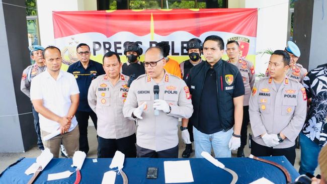 “F turun dari sepeda motor sambil mengacungkan sebilah celurit dan langsung menghampiri korban selanjutnya mengadu-adukan,” ujar Kapolres Metro Bekasi Kombes Gidion, dalam keterangannya kepada wartawan, Jumat (6/1/2023)