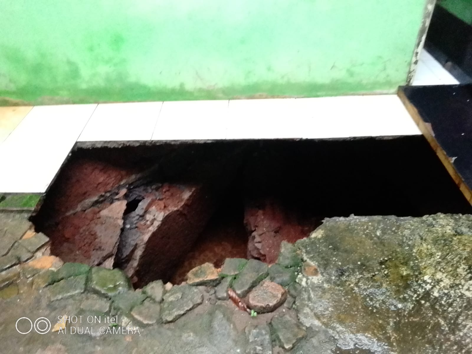 Rumah nenek Jenah (89) yang berada di Kampung Pedurenan RT 09/04, Kelurahan Jatiluhur, Kecamatan Jatiasih, Kota Bekasi, amblas.