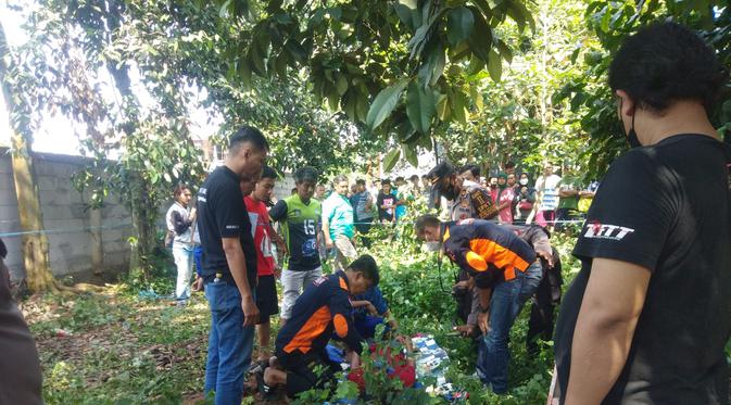 Warga Kampung Kelapa 2 RT 03 RW 07, Pedurenan, Mustikajaya, Kota Bekasi, digegerkan dengan penemuan jasad sesosok pria dalam kondisi tergantung di sebuah kebun kosong.