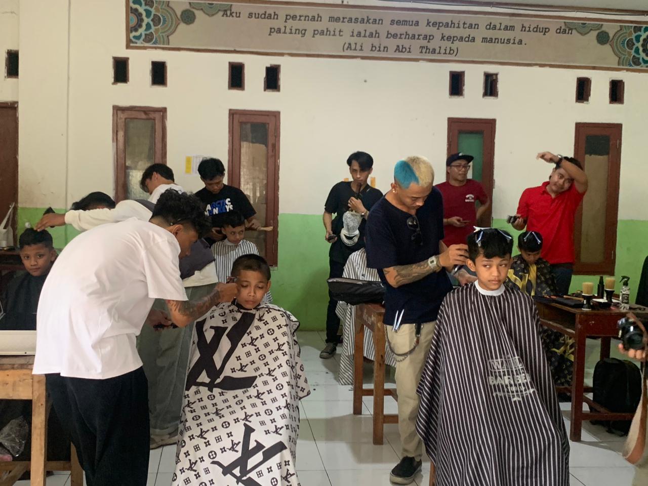 Tak hanya memberikan pelayanan cukur gratis, komunitas yang beranggotakan pemilik barbershop ini juga bekerja sama dengan Warteg Yatim.