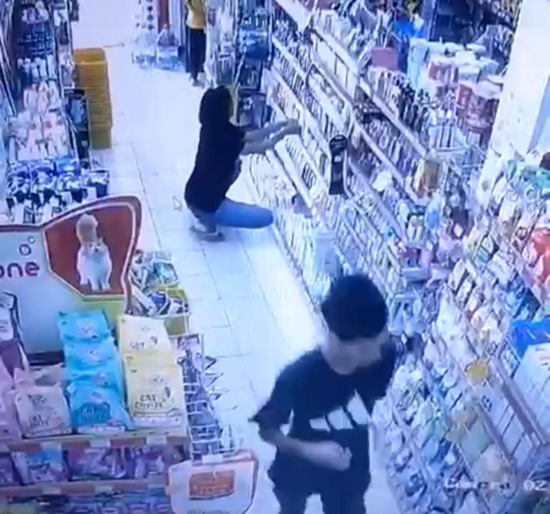 Kemudian, sejoli itu keluar dari mobil dan masuk ke minimarket. Begitu di dalam, mereka pun langsung menggasak kosmetik.