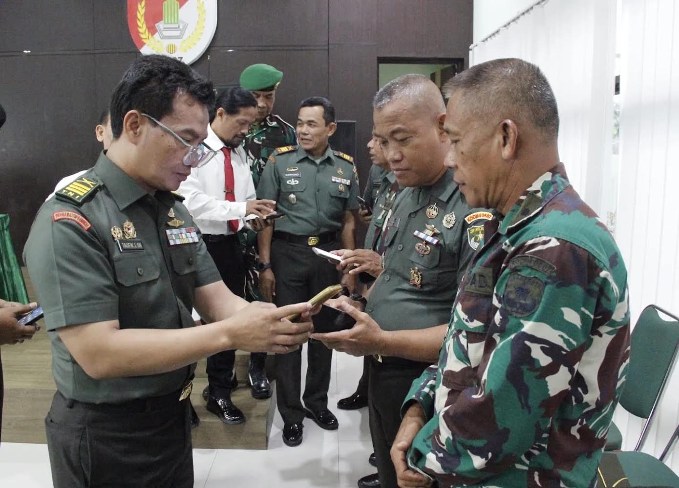 Komando Distrik Militer (Kodim) 05/07 Kota Bekasi menggelar razia ponsel bagi seluruh anggotanya guna mencegah aktivitas judi online di Aula Kodim, Margajaya, Bekasi Selatan, Senin (1/7/2024).