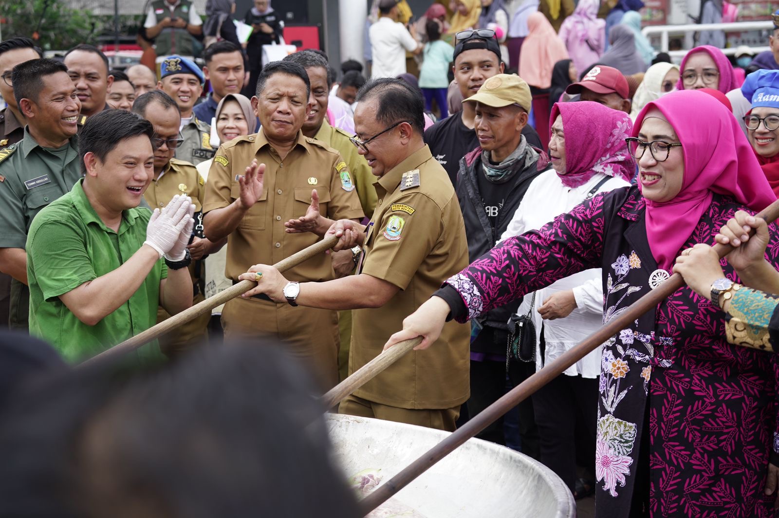 Pj. Wali Kota Bekasi, Gani Muhamad, bersama sang istri, Yolla Kusuma Gani selaku Pj. Ketua TP. PKK, serta Sekretaris Daerah Kota Bekasi, Junaedi, turut hadir menyaksikan hasil kreasi menu peserta lomba. Mereka juga bergabung dalam kemeriahan acara Masak Besar bersama Bobon Santoso.