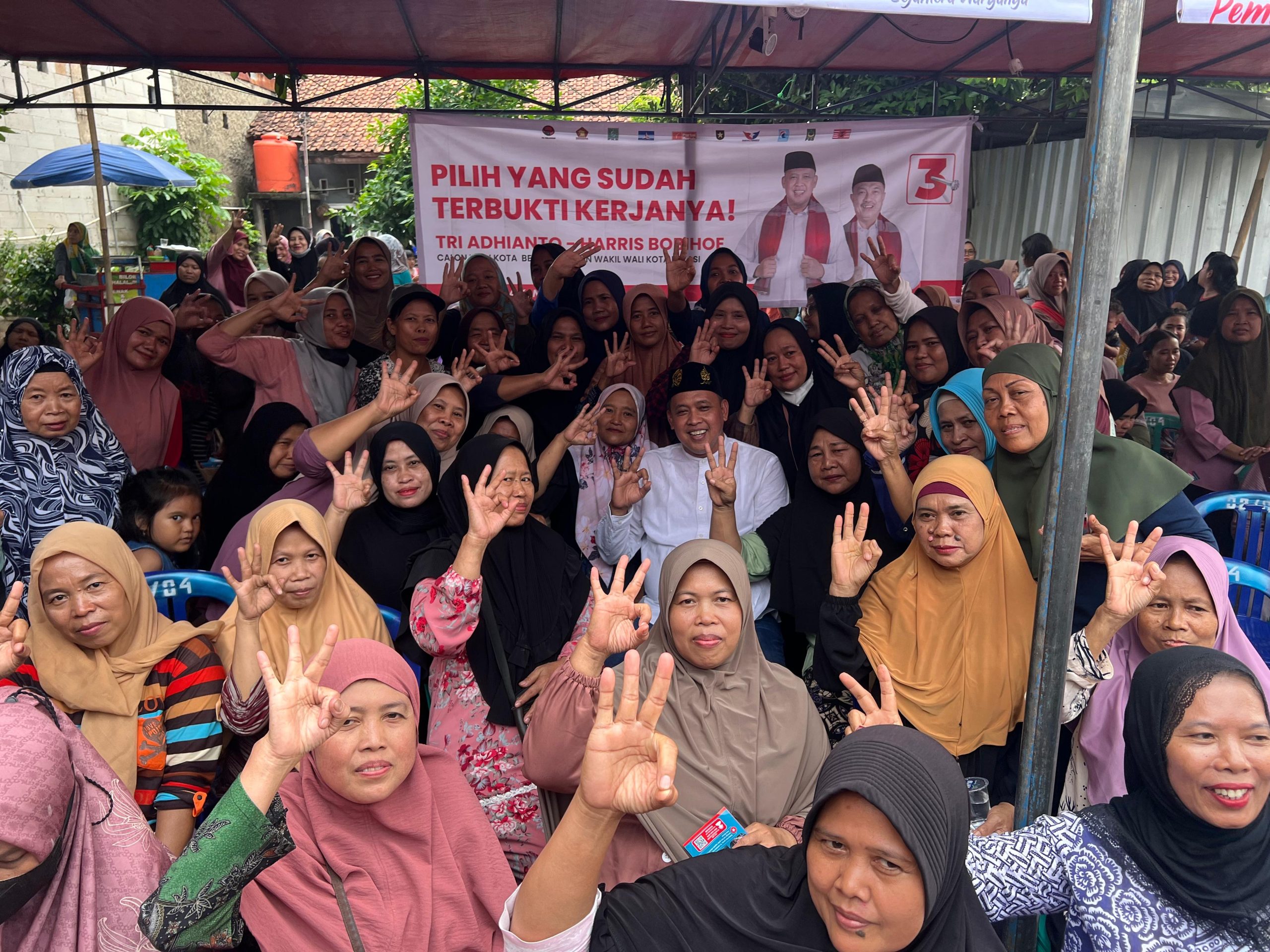 Ratusan warga dari Kelurahan Cikiwul, Kecamatan Bantar Gebang, antusias berkumpul pada Kamis (14/11/2024) untuk mendeklarasikan dukungan bagi pasangan calon Wali Kota dan Wakil Wali Kota Bekasi, Tri Adhianto dan Abdul Harris Bobihoe.