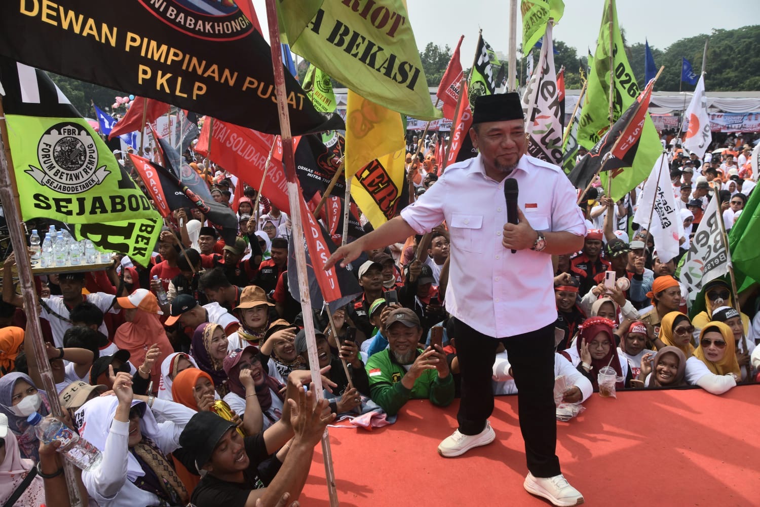 Calon Wali Kota Bekasi nomor urut 01, Heri Koswara, mengajak seluruh pendukungnya untuk terus berkampanye secara positif.