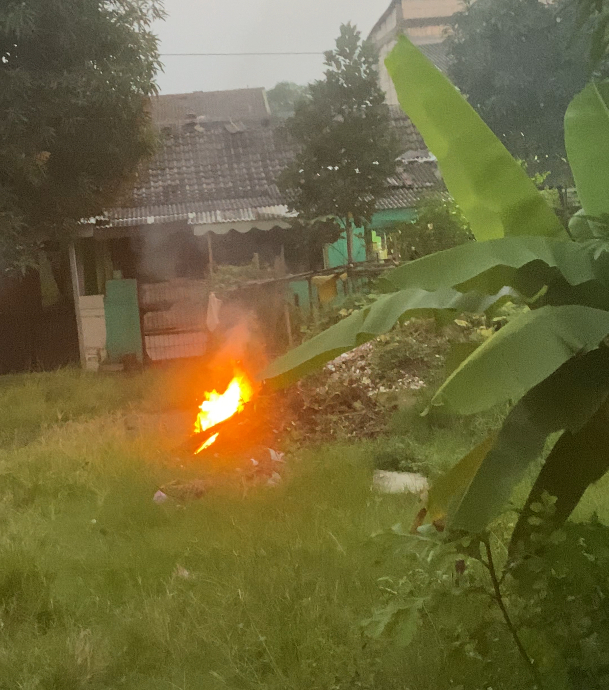 Pembakaran sampah seperti kayu, ilalang, hingga barang bekas perabotan rumah tangga sering terjadi di lapangan serbaguna RW 008, yang menyebabkan asap pekat menyebar ke permukiman warga.