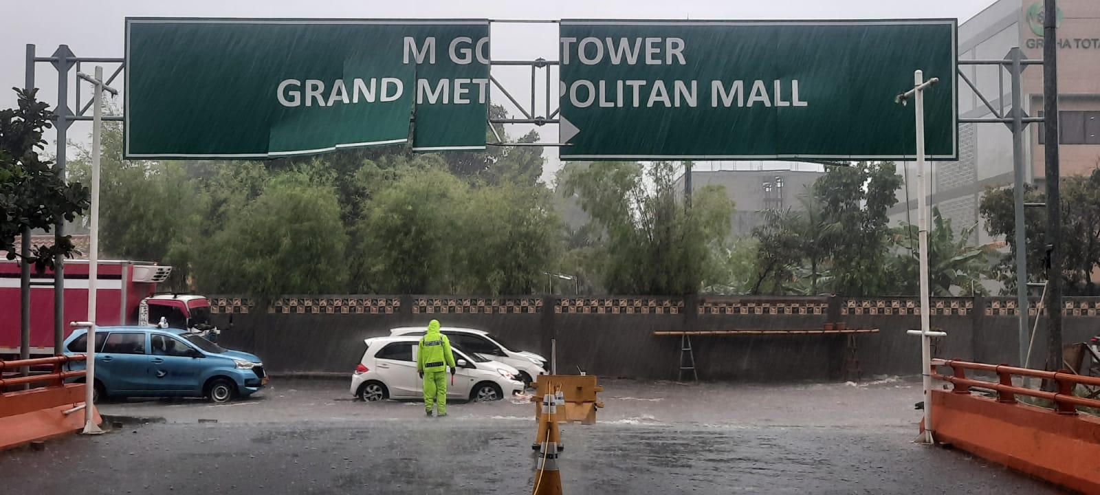 Pantauan GoBekasi di lokasi menunjukkan genangan cukup tinggi hingga membuat sejumlah kendaraan mogok saat melintas.