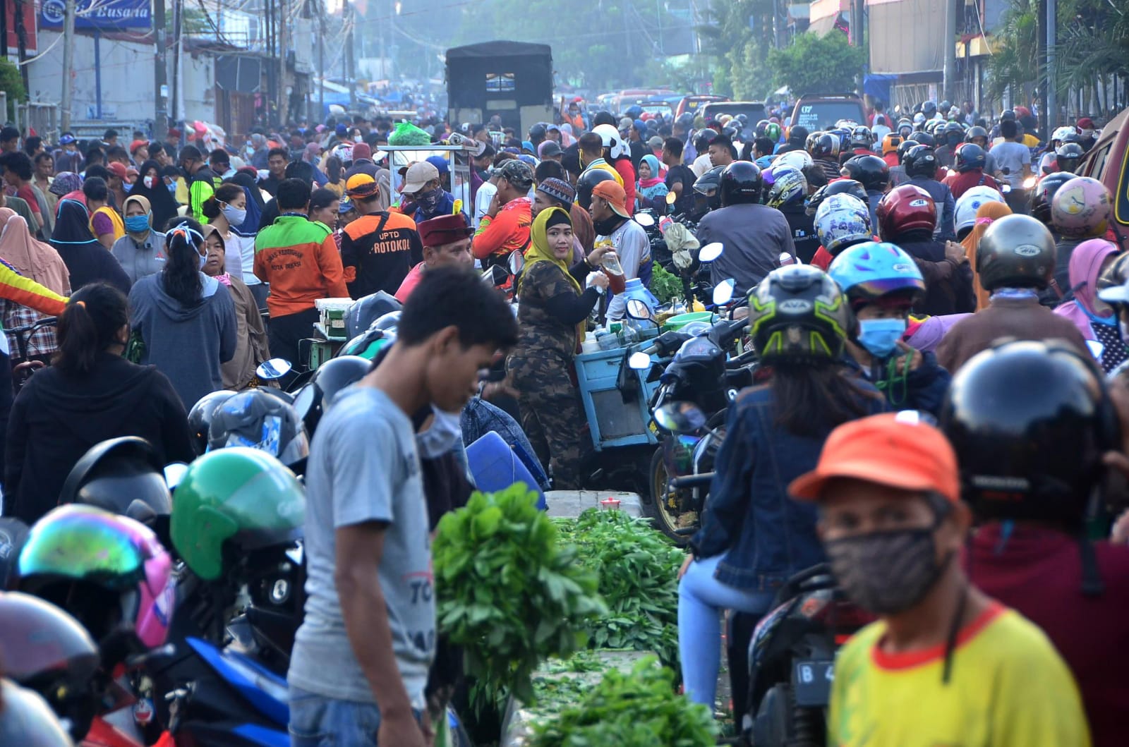 “Petugas sudah berjaga dan terus memberikan imbauan. Tapi karena pedagang tidak konsisten, anggota tiap pagi melakukan penertiban dengan mendorong pedagang masuk ke dalam area pasar,” jelasnya.