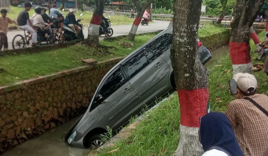 “Saya lagi duduk, tiba-tiba dengar suara kencang. Pas saya lari, ternyata mobilnya sudah masuk ke kali,” ujar Rinin di lokasi.
