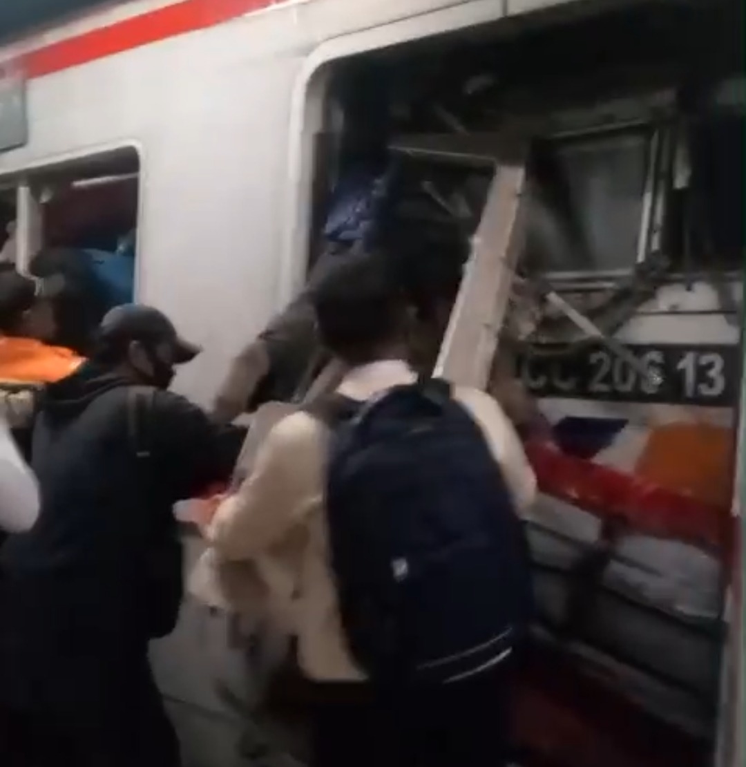Seluruh penumpang kereta terpaksa diturunkan dan dievakuasi oleh petugas ke tempat yang lebih aman. Hingga berita ini diturunkan, bangkai mobil taksi listrik tersebut masih berada di jalur rel dan belum berhasil dievakuasi.