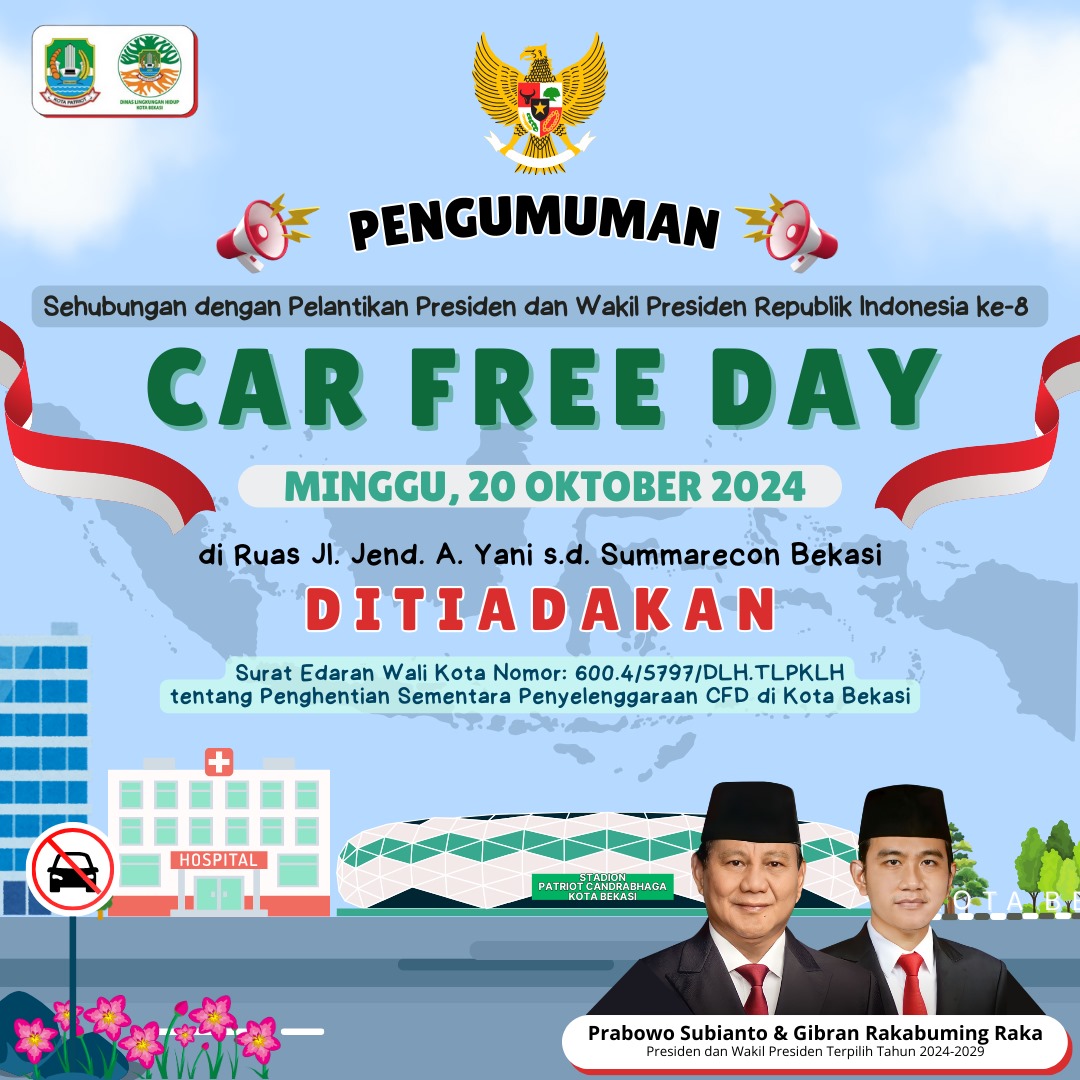 “Surat Edaran Wali Kota Nomor : 600.4/5797/DLH. Tentang Penghentian Sementara Penyelenggaraan CFD di Kota Bekasi. Dikarenakan, bertepatan dengan pelantikan Presiden dan Wakil Presiden,” ungkapnya, Jumat (18/10/2024).