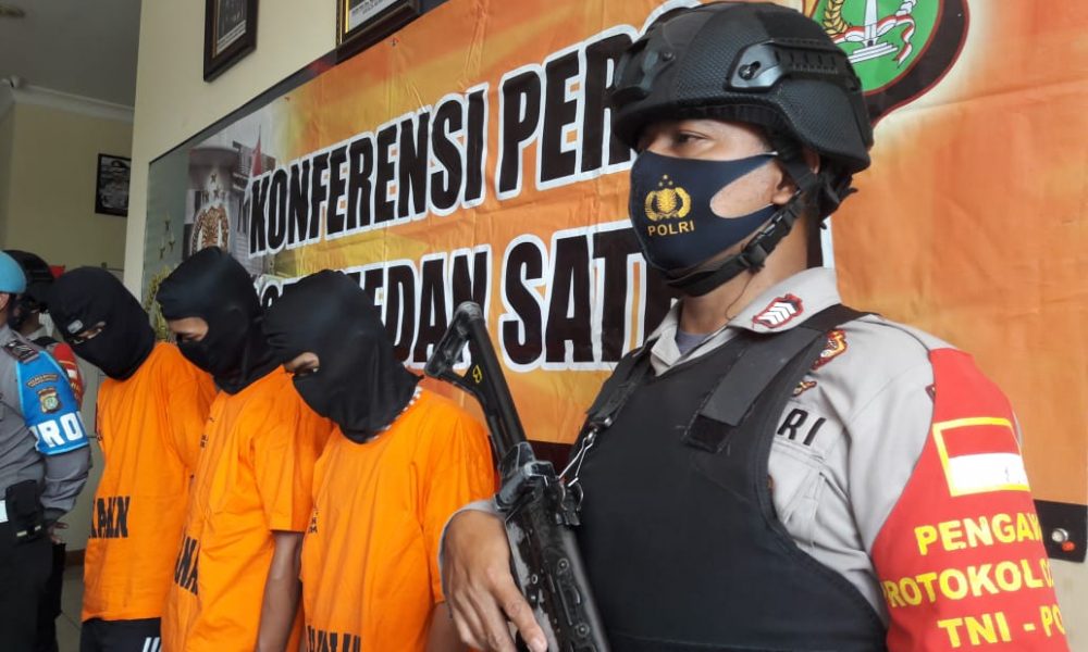 Karena membahayakan petugas dilapangan, maka kita berikan tindakan terukur ke bagian betis kaki ketiga pelaku,” kata Kapolres Metro Bekasi Kota, Kombes Wijonarko, Senin (31/8/2020).