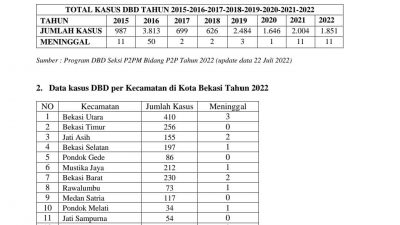 Dinas Kesehatan Kota Bekasi mengeluarkan laporan perkembangan data mengenai kasus Demam Berdarah di Kota Bekasi….