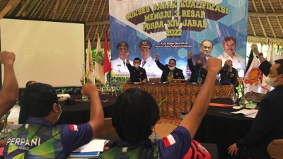 Komite Olahraga Nasional Indonesia (KONI) Kota Bekasi menggelar Rapat Kerja Tahunan 2020 di Caldera, Citarik,…