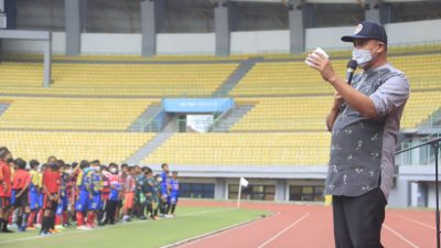 Pelaksana Tugas (Plt) Wali Kota Bekasi Tri Adhianto didampingi Kadispora buka kompetisi antar sekolah sepak…