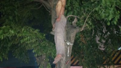 Seorang pria ditemukan tewas tergantung di sebuah pohon di Jalan Pondok Ungu Permai, RT 1/8,…