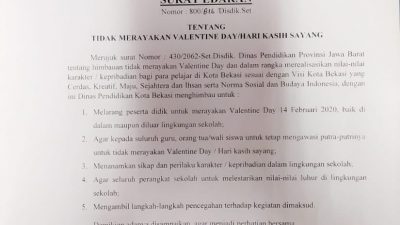 Pemerintah Kota Bekasi melalui Dinas Pendidikan membuat surat edaran bernomor 800/816/.Disdik.Set. Surat itu tentang imbauan…